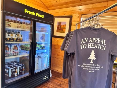 Appeal to Heaven flag on the back Shadows logo on the front. American flag on the sleeve. Only a few left in stock!!